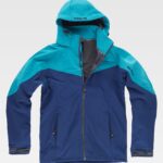 Jaqueta com presilhas em contraste. Gola alta com fita personalizada e abrange no interior. Fecho de cremalheira e protetor no queixo. Bainha com elástico ajustável. Punhos com fecho ajustável de velcro personalizado e refletor. Dois bolsinhos laterais e outro no peito com fecho de cremalheira. Logótipo bordado no peito e nas costas. Interior polar forrado com rede na parte dianteira. O revestimento técnico impede a penetração da água ao mesmo tempo que permite a transpiração. Ajuste no capuz, bainha e punhos para aumentar a protecção.