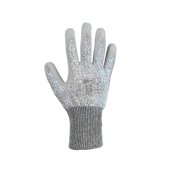 Luva anti-corte de nível D;Malha revestida a Poliuretano (PU);Cinza/Cinza;EN 388:2016; Niveis: 4X42D