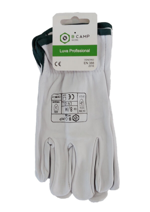 Luva totalmente em pele com alta resistência.Ajuste elástico;Norma EU: EN388/2016