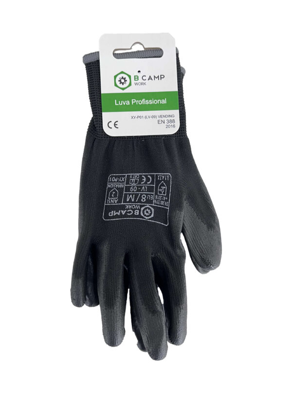 Luva em malha parcialmente revestida a poliuretano (PU).Punho elástico;Norma EU: EN388/2016