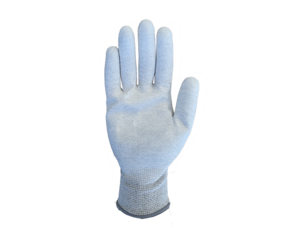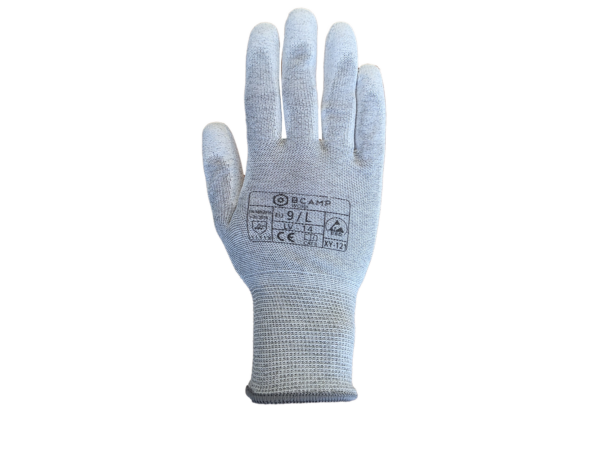 LUVA EM PU – ESD Luva com fio de carbono; Contra descargas eletroestáticas; Parcialmente revestida; Punho elástico.