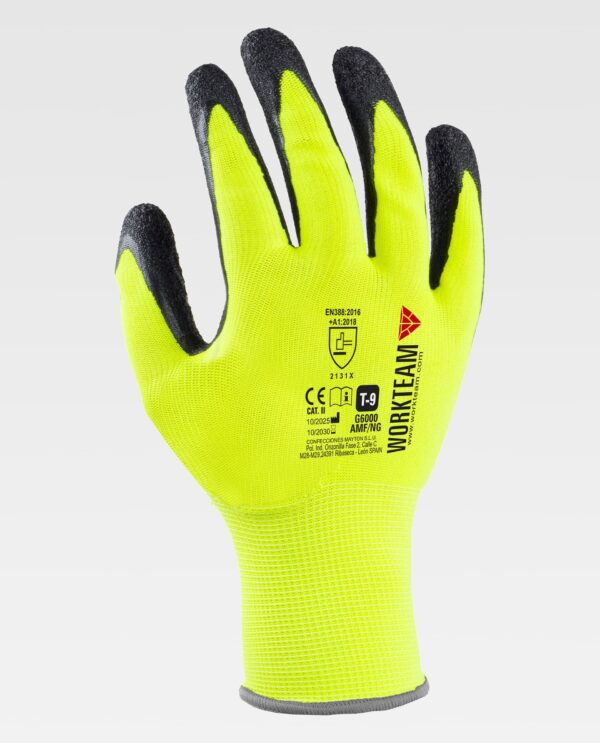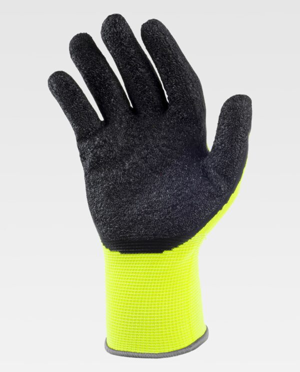 Luvas de 13 galgas, com suporte de poliéster e revestimento de látex rugoso. Este revestimento proporciona uma aderência ideal em superfícies secas e húmidas, o que melhora a destreza e a precisão na manipulação de objetos e, por sua vez, aumenta a resistência a certos líquidos. Ao não apresentar costuras, aumenta o conforto, evitando irritações causadas pelo roçar. Punho
