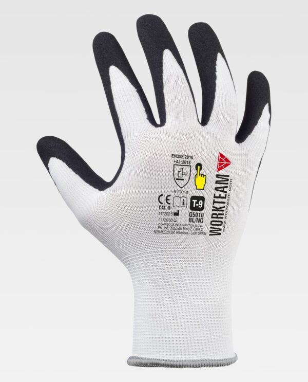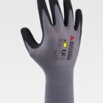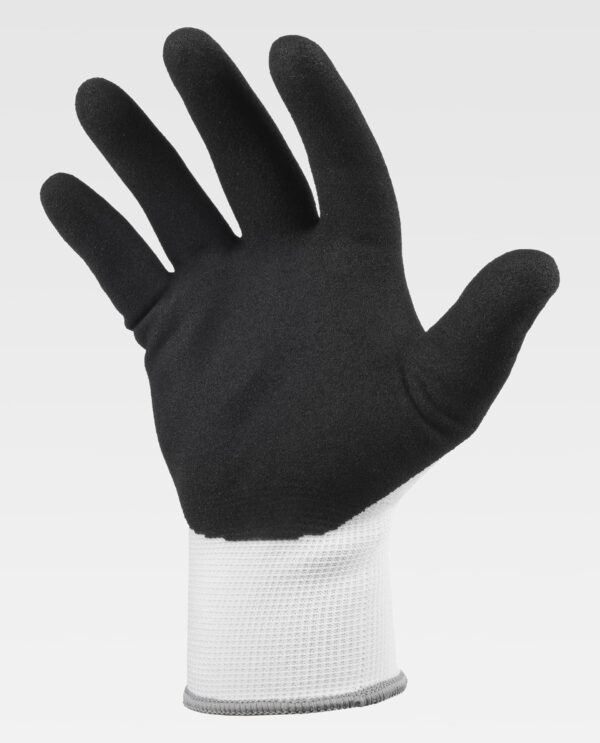 Luvas de 13 galgas, com suporte de poliéster e revestimento de nitrilo microporoso. O nitrilo confere flexibilidade e ductilidade, resistindo ao mesmo tempo ao contacto com óleos, lubrificantes e gorduras. Elevada resistência ao desgaste e à abrasão. O suporte de poliéster oferece grande transpirabilidade e seca rapidamente. Ao não apresentar costuras, aumenta o conforto, evitando irritações causadas pelo atrito. Punho elástico.