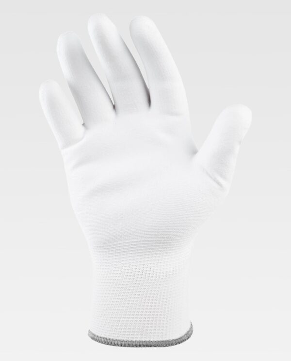 Luvas de 13 galgas, com suporte de poliéster e revestimento de poliuretano. O poliuretano confere flexibilidade, sensibilidade, aderência e durabilidade à luva. A ausência de costuras aumenta o conforto, evitando irritações causadas pelo atrito. Punho elástico.
