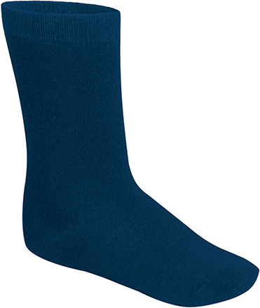 Meias infantis de altura média. Confecionadas em tecido respirável rico em algodão que promove a ventilação, com poliéster resistente e durável e elastano flexivel e ajustável. Elásticos na parte superior para um melhor apoio e um melhor ajuste. Reforços do calcanhar e dos pés com poliamida que aumentam a sua resistência. Métodos adequados de marcação: bordados, cosidos. Ideal para uso com sapatos de vestir e farda escolar.