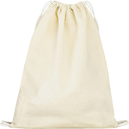 Mochila de cordas. Confecionada em tecido de 100% algodão natural, sem tratamento químico no corante, resistente e respirável. Fio de algodão trançado de espessura média cosido nos lados inferiores, que permite o seu ajuste nos ombros e faz a função de fecho. Costuras interiores reforçadas com fita que aumenta a sua resistência. Métodos adequados de marcação: serigrafia, vinil, transfer. Ideal para brindes promocionais, brindes personalizados e transporte de objectos leves.