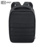 Mochila realizada em material rpet, com interior e asas almofadadas.Inclui um bolso traseiro anti-roubo e reforço dorsal.Abertura 180º.Tambem inclui sujeicçao elástica para levar num trolley.Para portáteis até 17″