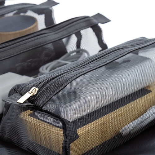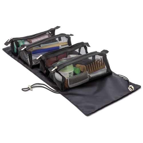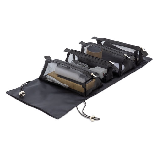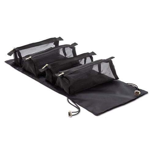 Necessaire com 4 compartimentos individuaisOs compartimentos estão fixos à base com velcro para facilitar o manuseamento.