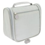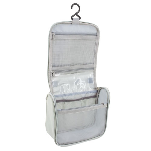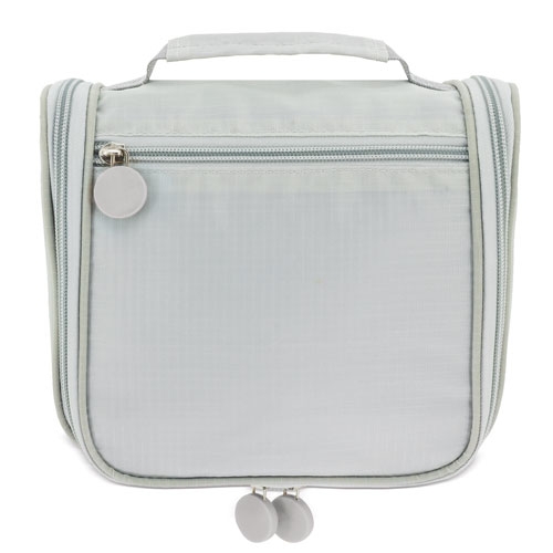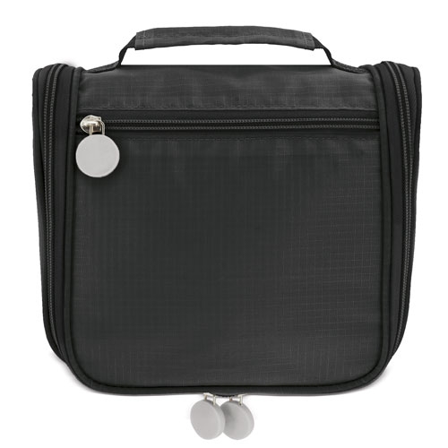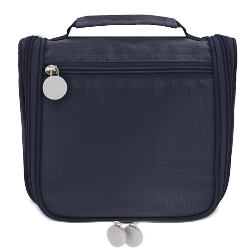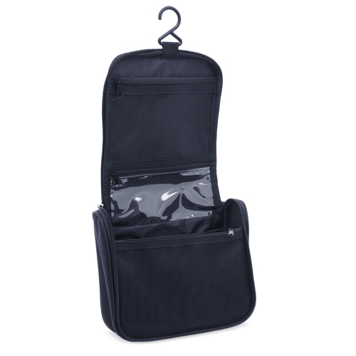 Práctico e amplio necesser de viagem unisex, com vários compartimentos para levar os seus objetos de banho ordenadamente.Dispoe de um cabide para colocar e ter todas as coisas á mao sem que ocupe espaço.Realizado em poliéster com textura de quadros que protege das salpicaduras e tiradores de silicona.