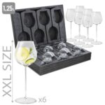 Set de 6 taças de cava de formato gigante, ideais como presente. Apresentaçao em caixa deluxe, máxima proteção