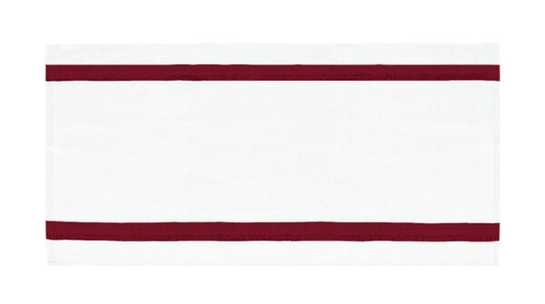 Pano de cozinha com desenho às riscas horizontais. Fabricado em tecido plano leve 100% algodão, suave, resistente e durável, com fio tingido e desenho às riscas horizontais. Costuras com bainha e presilhas de segurança nos cantos para maior resistência e durabilidade. Incluí fita para pendurar num lateral traseiro para facilitar o armazenamento e secagem. Métodos adequados de marcação: serigrafia, transfer, bordados, cosidos. Ideal para limpar superfícies de cozinha.