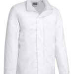 Parka acolchoada impermeável, sem bolsos, sem fechos e sem botões, especialmente adequada para a indústria alimentar. Confecionada com tecido impermeável Canvas no exterior, forro interior liso e acolchoado interno que proporciona retenção térmica. Costuras termosseladas para evitar a infiltração de água e manter o corpo seco da chuva. Gola alta de dupla camada com polar interior, fecho frontal com pala e velcro na parte superior e inferior para calor, conforto e funcionalidade. Um bolso interior com velcro para ter tudo acessível. Métodos adequados de marcação: serigrafia, transfer, vinil, bordados, cosidos. Ideal para fardas de indústria alimentar.
