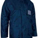 Parka acolchoada impermeável, sem bolsos, sem fechos e sem botões, especialmente adequada para a indústria alimentar. Confecionada com tecido impermeável Canvas no exterior, forro interior liso e acolchoado interno que proporciona retenção térmica. Costuras termosseladas para evitar a infiltração de água e manter o corpo seco da chuva. Gola alta de dupla camada com polar interior, fecho frontal com pala e velcro na parte superior e inferior para calor, conforto e funcionalidade. Um bolso interior com velcro para ter tudo acessível. Métodos adequados de marcação: serigrafia, transfer, vinil, bordados, cosidos. Ideal para fardas de indústria alimentar.
