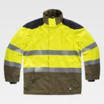 Parka ignífuga, antiestática com protecção para soldadura e arco eléctrico, de alta visibilidade. Gola alta e fecho de correr de metal e presilhas ocultas por aba. Dois bolsos no peito e dois bolsos laterais sobrepostos e com fecho de correr oculto. Uma fita refletora ignífuga nos ombros e dois no peito, nas costas e mangas. Punho elástico no interior da manga.