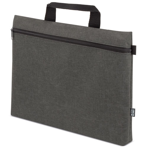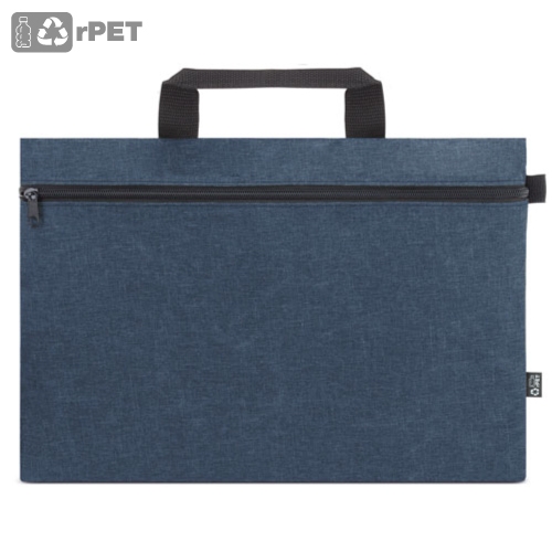 Pasta feita em material Rpet, disponivel em cores marino, cinzento, preto e burdéos.