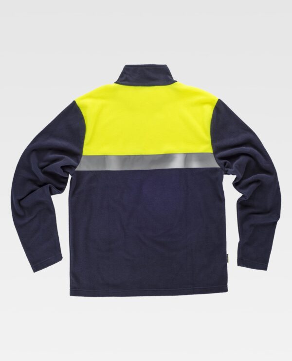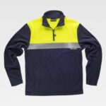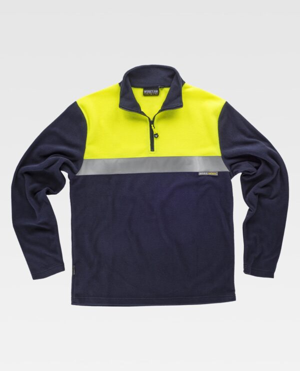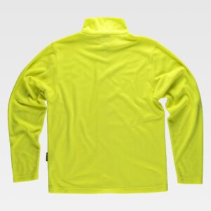Polar combinado ‘segunda pele’ de gola alta. Meio fecho de correr. Parte superior de alta visibilidade. Refletor no peito e nas costas. Ligeiro, confortável e desportivo, muito quente.