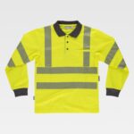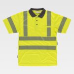 Pólo de alta visibilidade de manga curta em micropiqué. Refletores segmentadas para regular a transpiração. Gola clássica com lapela de três botões e abrange nas costuras interiores. Um bolso no peito e outro para caneta na manga. Uma fita refletora termo-adesiva nos ombros e nas mangas e duas peito e costas. Punho elástico combinado. Gola em ponto de canelado.