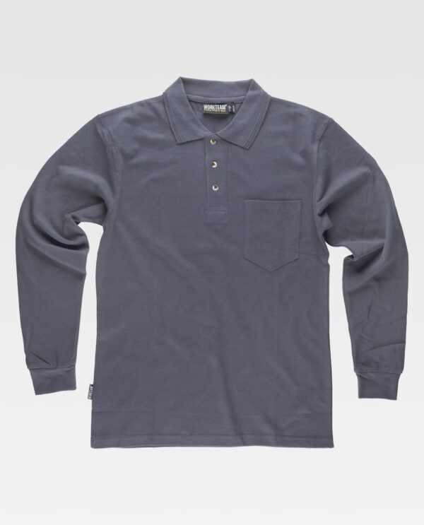 Pólo de algodão em tecido pique. Manga comprida e gola clássica com carcela de três botões. Abrange as costuras no interior. Um bolso de chapa aberto no peito. Tecido fresco e poroso que permite uma ventilação adequada. Gola e punhos elásticos em ponto de canelado.