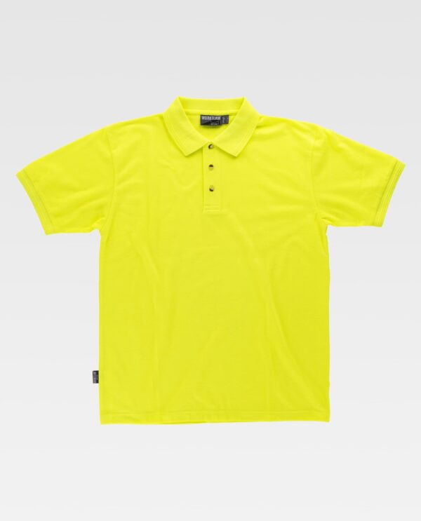 Pólo de manga curta em tecido pique. Gola clássica com carcela de tres botões. Abrange as costuras no interior da gola. Tecido fresco e poroso que permite uma ventilação adequada. Gola e acabado da manga em ponto de canelado.