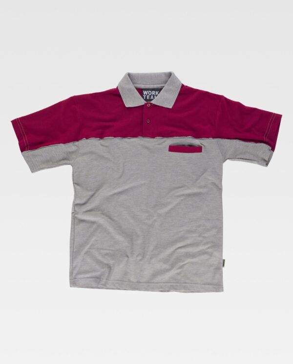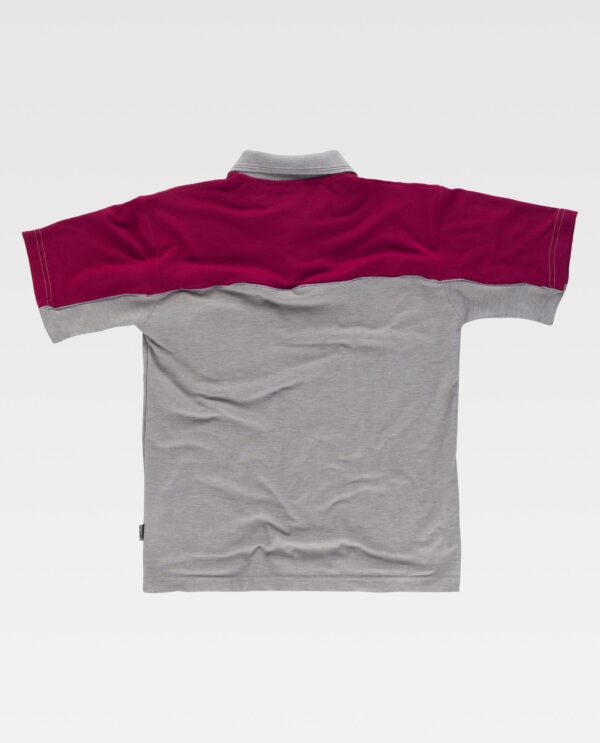 Pólo combinado de manga curta em tecido pique com debruns refletores. Gola clássico com lapela de dois botões e abrange nas costuras interior. Corpetes com debruns em contraste que seguem na manga. Um bolso semi-embutido no peito. Corpetes, detalhes no bolso e peças nas mangas em contraste. Tecido fresco e poroso que permite uma ventilação adequada. Gola em ponto de canelado.