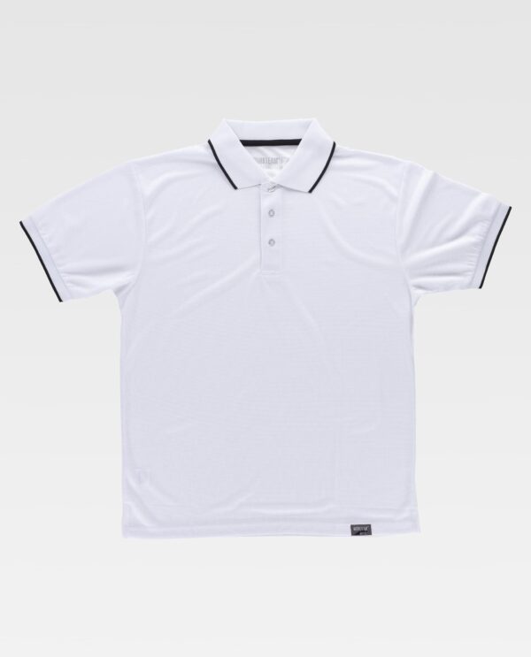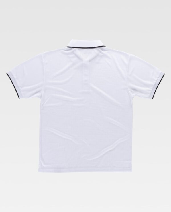 Pólo de manga curta em tecido waffle. Gola clássica com carcela de três botões. Abrange as costuras no interior da gola. Tecido fresco e poroso que permite uma ventilação adequada. Gola e acabado da manga em ponto de canelado.