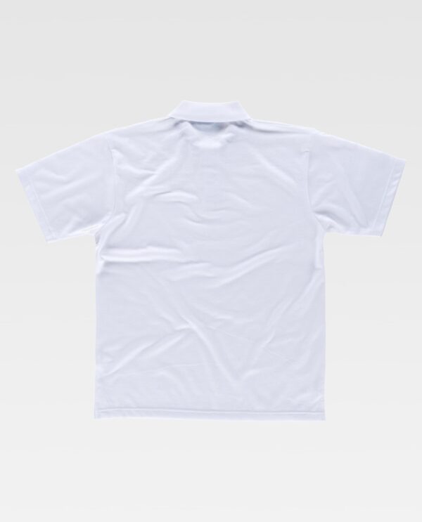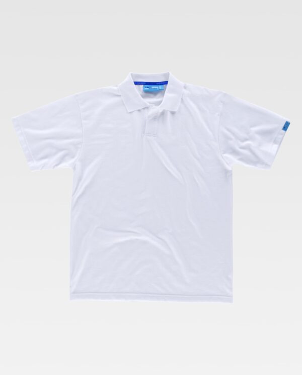 Pólo de manga curta em tecido piqué de algodão com tratamento antibacteriano. Gola clássica sem botões. Gola a ponto de canelado. Aberturas laterais. Tecido técnico transpirável com tratamento com iões de prata para inibir o crecimento das bacterias e assim evitar a absorção da humidade e o mau cheiro.