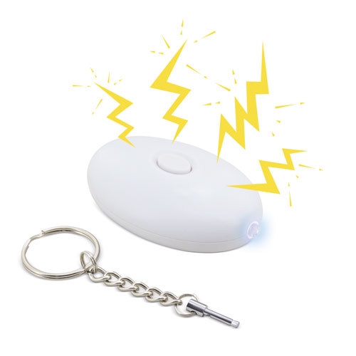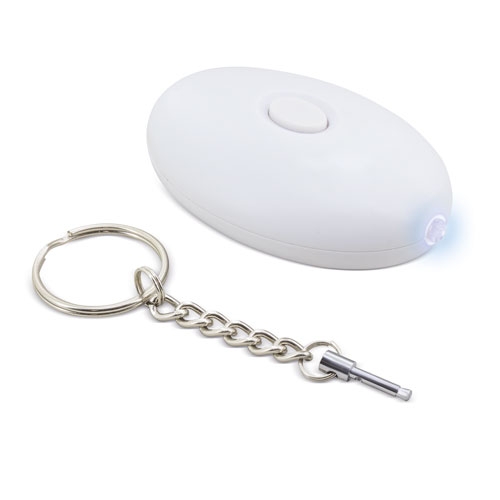Original porta-chaves com lanterna LED, ademais ao soltar a anilha sonará um potente alarme, se a voltas a colocar o alarme deixará de ouvir-se.Pilhas incluídas (3 LR44), cada porta-chaves numa bolsa individual com fecho hermético e caixa de apresentação.130-140 decibéis