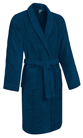 Robe de banho. Confecionado em tecido 100% algodão felpudo absorvente de alta qualidade. Gola larga estilo quimono com costura ornamental para reforçar a sua estrutura e mangas largas com bainha decorativa que pode ser enrolada para um maior conforto. Dois grandes bolsos frontais para fácil acesso. Cintura com dois passadores de cinto e cinto largo com costura decorativa para reforçar a sua estrutura e permitir um melhor ajuste. Métodos adequados de marcação: bordados, cosidos. Ideal para utilização em casas de banho, hotéis, ginásios e spas.