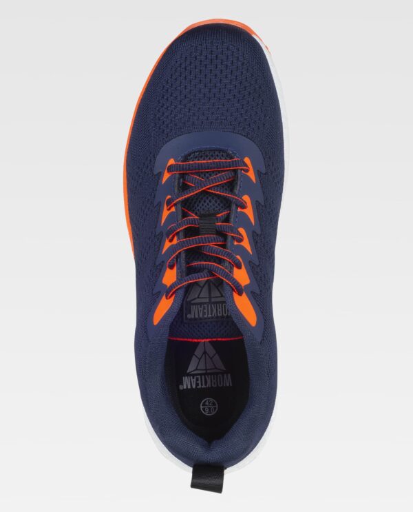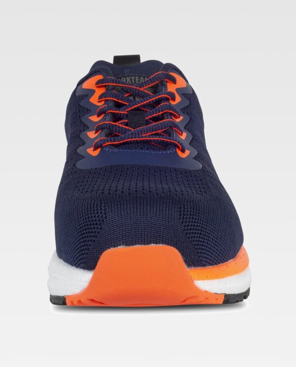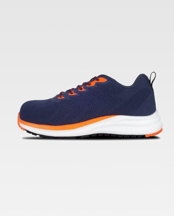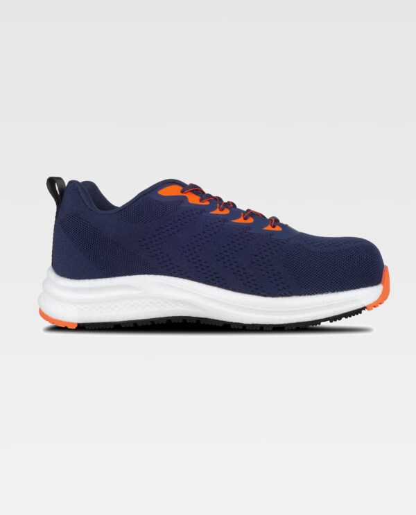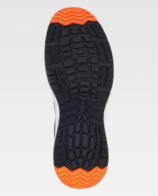 Sapato combinado com cordões. Sem metal. Detalhes fluorescentes. Parte superior em tecido de malha. Sola em E-TPU ultra-leve combinada com borracha fluorescente. Biqueira em compósito anti-impacto e palmilha interna em tecido anti-perfuração. Palmilha amortecedora amovível e leve. Propriedades anti-estáticas. Absorção de energia na zona do calcanhar. Resistência aos hidrocarbonetos. Resistência à perfuração. Resistência ao deslizamento em cerâmica com glicerina. S1 PS SR FO.