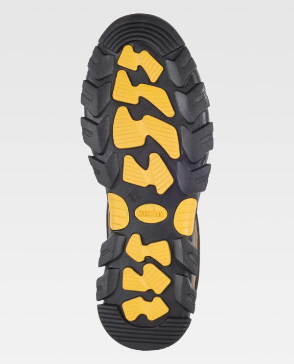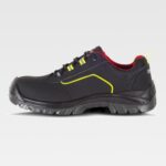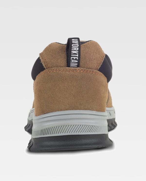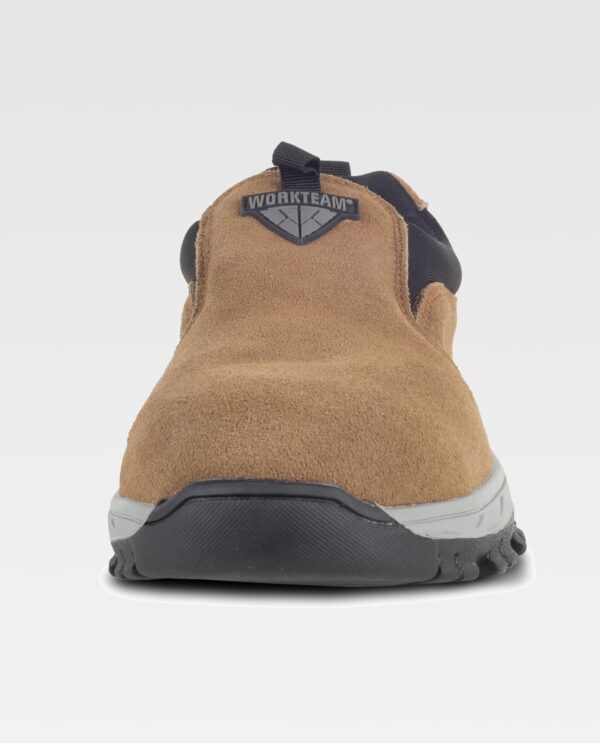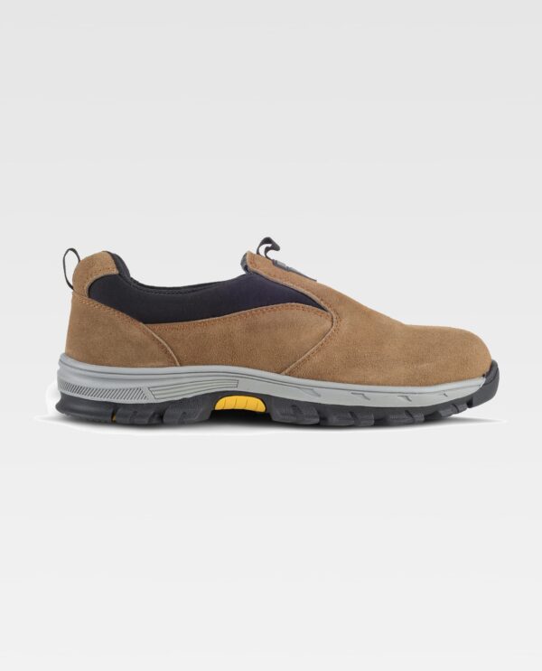 Sapato de serragem sem cordoes. Isento de metal. Elástico nos laterais e presilha para pegar na parte trás do calcanhar e na lingueta. Biqueira de composite anti-impactos e palmilha têxtil anti-perfuraçao. Palmilha EVA acolchoada para um maior conforto. Sola combinada em duas cores e propriedades antiestáticas. Absorção da energia na zona do salto. Resistente a perfuração. Resistente aos hidrocarbonetos. Resistente ao deslizamento sob lousa cerâmica com dissolução de sabão e sob aço com glicerina. S1P SRC.