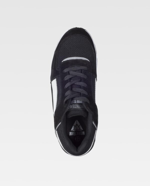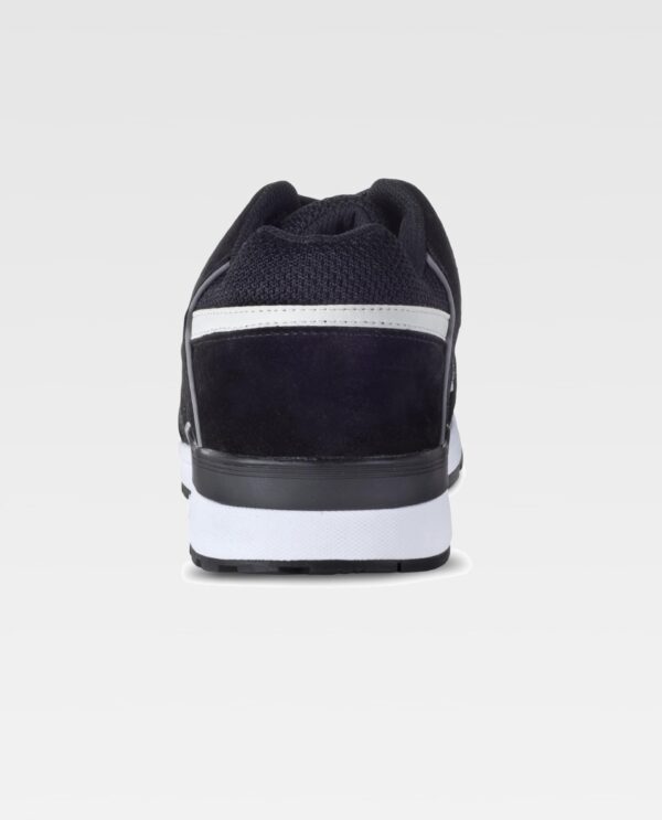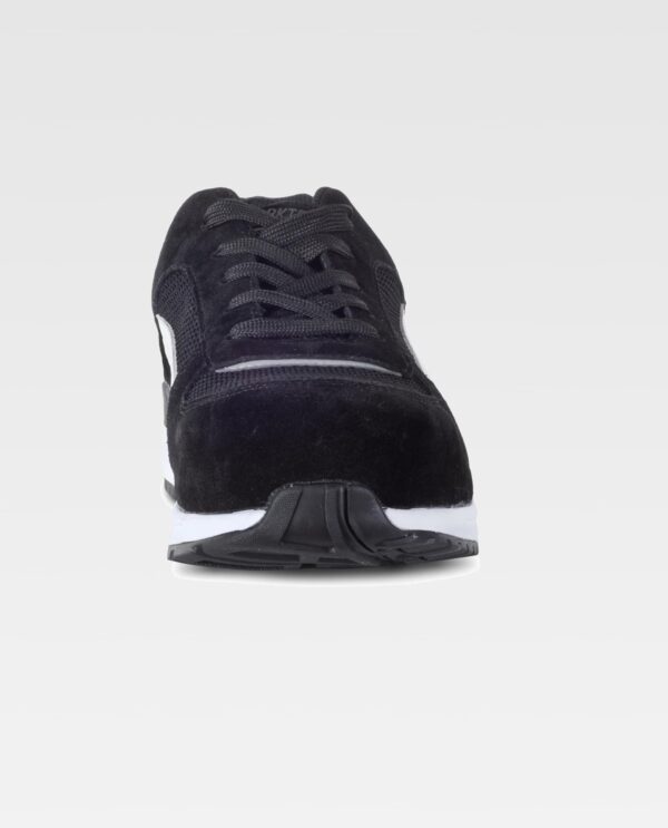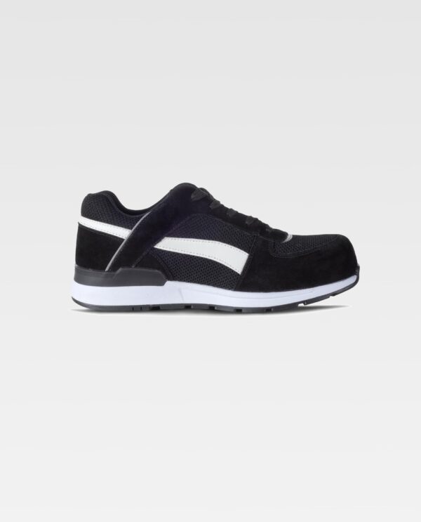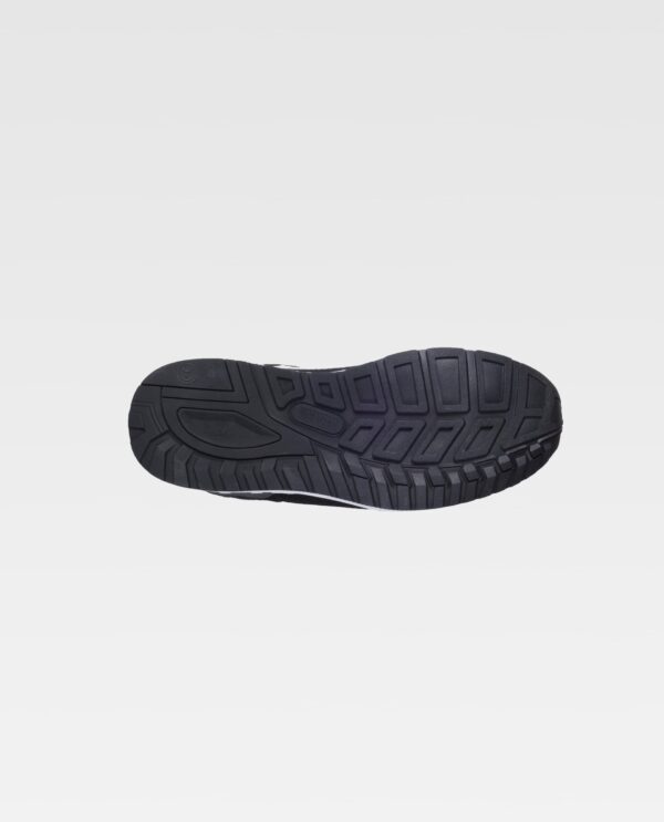Sapato combinado com cordões. Livre de metal. Detalhes refletores. Sola PU e EVA combinada em duas cores. Propriedades antiestáticas. Absorção da energía na parte do salto. Resistente aos hidrocarbonetos. Resistente a perfuração. Resistência ao deslizante sobre lajota. S1P SRA.