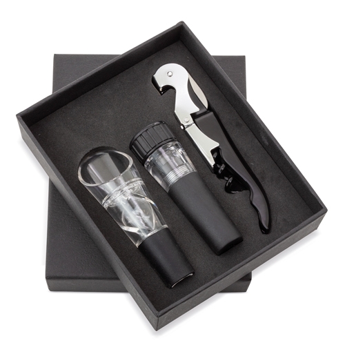 Estojo prático que inclui utensílios essenciais para vinho (abridor de garrafas e doseador de vinho).Uma opção prática de presente para eventos corporativos ou campanhas de final de ano.
