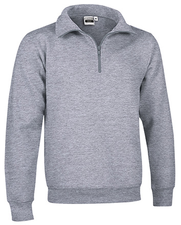 Sweatshirt com meio fecho de correr. Confecionada em tecido felpa de algodão com poliéster para maior durabilidade e resistência com cardado no interior para uma melhor retenção térmica e conforto. Gola alta com meio fecho de correr que proporciona calor adicional ou ventilação, dependendo da estação do ano. Cintura e punhos em canalé elástico que se adapta confortavelmente ao corpo. Costura dupla na gola, ombros, zona das axilas, punhos e bainha que aumentam a sua resistência. Métodos adequados de marcação: serigrafia, transfer, bordados, cosidos. Ideal como roupa de trabalho e têxteis publicitários.