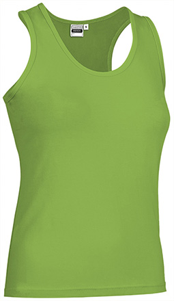 Camiseta manga cava para mulher, gola redonda ampla e corte estreito. Confecionada em tecido de malha elástica de algodão Ring Spun com elastano suave, confortável e flexível. Costas em T que se adaptam ao corpo e permitem maior liberdade movimento. Alças, gola e cava com debrum para um melhor acabamento. Dupla costura na bainha que aumentam a sua resistência. Métodos adequados de marcação: serigrafia, transfer, vinil, bordados, cosidos. Ideal para diferentes usos: festas populares, merchandising, roupa de trabalho, roupa casual e têxteis publicitários.