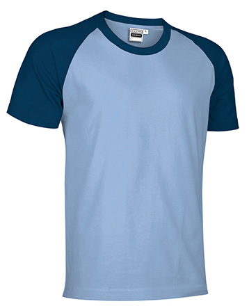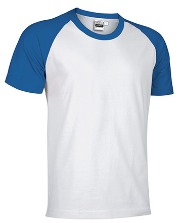 T-shirt de manga curta, gola redonda, desenho bicolor e corte regular. Confecionada em tecido de malha lisa 100% algodão Ring Spun, suave e confortável. Gola redonda em canalé elástico que se adapta confortavelmente ao corpo, manga raglan para maior conforto e mobilidade. Dupla costura na gola, bainha e mangas que aumentam a sua resistência. Fita interior na gola que reforça e mantém sua estrutura. Métodos adequados de marcação: serigrafia, transfer, vinil, bordados, cosidos. Ideal para souvenir, têxteis publicitários e roupa casual.