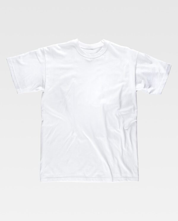 T-shirt clássico de manga curta en algodão. Gola redonda em ponto de canelado. Abrange as costuras no interior da gola. Sem costuras laterais.