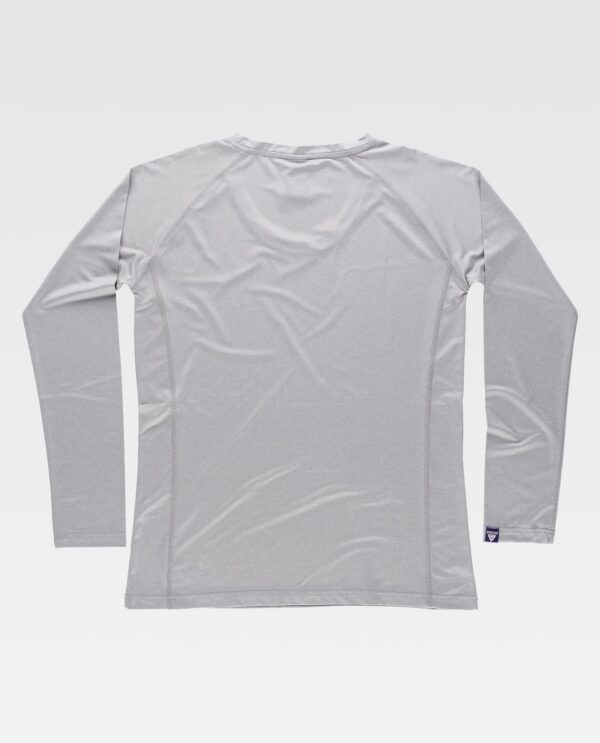 T-shirt mulher de manga comprida. Gola redonda e costuras planas no interior. Manga ragla e vivos decorativos nos laterais. Elástica e confortável. Desenho estilizado e adaptável ao corpo.
