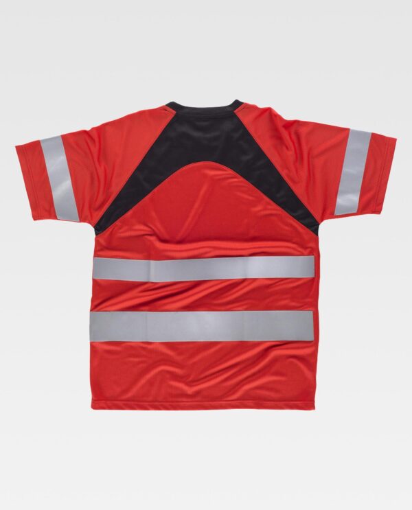 T-shirt combinada de manga raglã curta em poliéster bird’s eye com fitas refletoras. Gola redonda com abrange nas costuras interiores e faixas em contraste na parte de frente e nas costas. Uma fita refletora nas mangas e duas de diferente tamanho no peito e nas costas. Tecido fresco e ligeiro de alta permeabilidade ao ar. Transpirável, de fácil secagem e resistente a encolher.