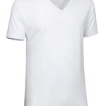 T-shirt de manga curta, gola em V e corte slim. Confecionada em tecido de malha lisa 100% algodão Ring Spun suave e confortável. Gola em V de canalé, ampla, confortável e refrescante. Dupla costura na gola, bainha e mangas que aumentam a sua resistência. Fita no interior da gola para um melhor acabamento. Métodos adequados de marcação: serigrafia, transfer, vinil, bordados, cosidos. Ideal como têxteis publicitários e roupa casual.