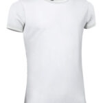 T-shirt elástica de manga curta, gola redonda e corte slim. Confecionada em tecido de malha elástica de algodão Ring Spun com elastano suave, confortável e flexível. Gola redonda de canalé elástico que se adapta confortavelmente ao pescoço. Dupla costura na gola, bainha e mangas que aumentam a sua resistência. Fita interior na gola que reforça e mantém sua estrutura. Métodos adequados de marcação: serigrafia, transfer, vinil, bordados, cosidos. Ideal como roupa casual e têxteis publicitários.