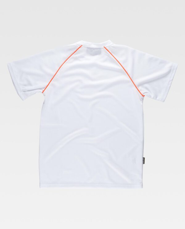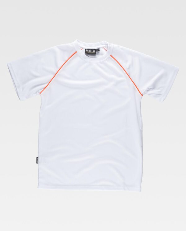 T-shirt de manga curta em tecido técnico. Gola redonda com abranges nas costuras interiores e manga raglã. Debruns de alta visibilidade. Desportivo, ligeiro e de rápida secagem.