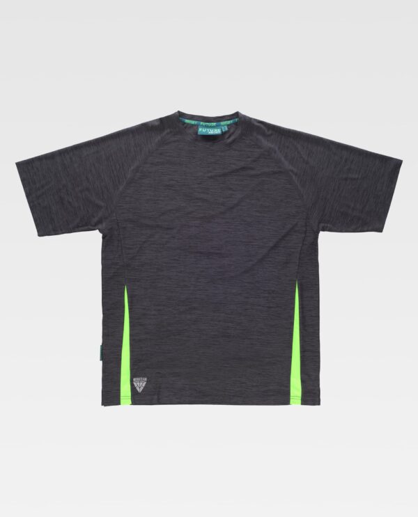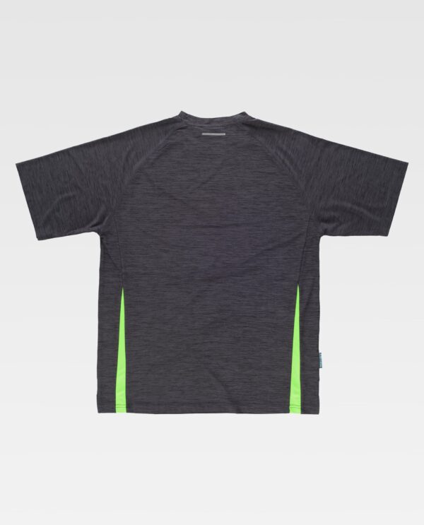 T-shirt combinada de manga curta em tecido técnico. Gola redonda, manga ragla e cortes combinados nos laterais. Detalhes refletores no pescoço. Desportiva, ligeira e de rápida secagem.