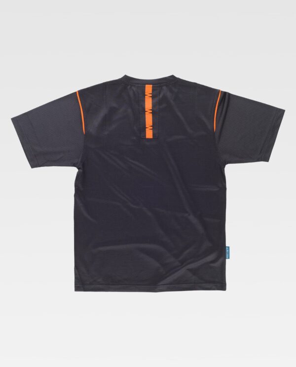 T-shirt de manga curta em tecido Honeycomb. Gola redonda e recortes decorativos. Bolso no peito com fecho de correr em nylon. Fita decorativa personalizada nas costas. Desportiva, leve e de secagem rápida.