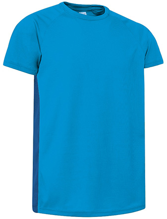 T-shirt desporto bicolor de manga curta e gola redonda. Confecionada em tecido técnico respirável Bird-Eye que facilita a secagem rápida e a eliminação do suor. Laterais com tecido técnico micro-perfurado que facilita a transpiração. Manga raglan que proporciona maior conforto e promove a mobilidade. Costuras planas na zona das axilas , mangas e laterais para minimizar a fricção contra a pele. Métodos adequados de marcação: sublimação sobre a cor branca, serigrafia, transfer, vinil, bordados, cosidos. Ideal para actividades físicas e como roupa desportiva.