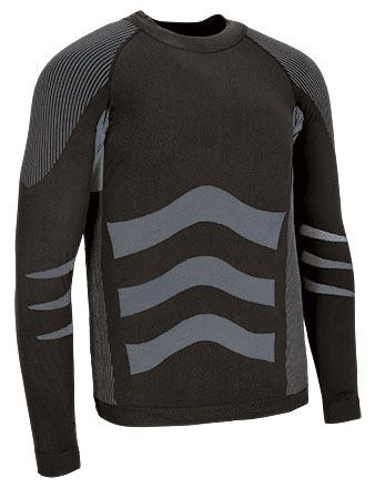 T-shirt térmica de manga comprida bicolor. Confecionada em tecido respirável de 2D Intarsia com alta elasticidade, tecido Jacquard micro-perfurado na zona das axilas e nas costas para maior ventilação, reforçada com canales de compresão nos ombros e laterais para maior liberdade de movimento. Fabricada usando métodos seamless (sem costuras) e flat seam (costuras planas) que minimizam a frição contra a pele. Desenho anatómico e dinâmico que favorece a mobilidade. Gola redonda com dupla capa de canalé elástico que se adapta confortavelmente, punho de canalé extra elástico com costura invisível para maior conforto. Ideal como roupa de montanha e peça interior para atividades que requeiram esforço físico.
