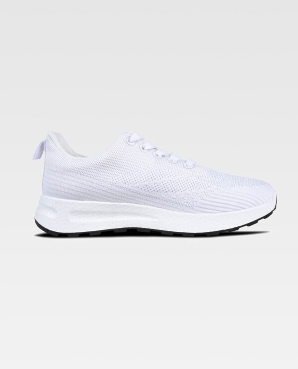 Ténis desportivo de malha com cordões. Gola e língua acolchoados e forrados com tecido de malha. Presilha para tirar na parte cima do calcanhar. Palmilha amortecedora amovível e leve. Sola em PVC. Resistente à lavagem.