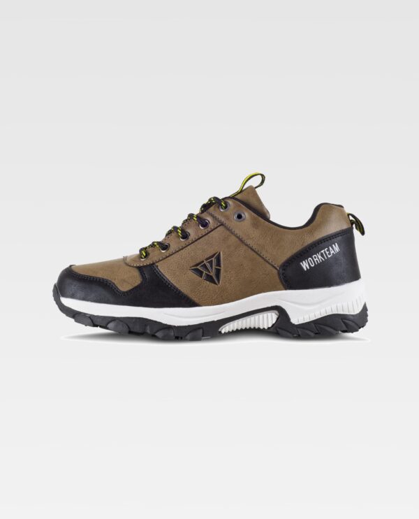 Sapato tipo trecking com cordões. Ilhós metálicos. Sola combinada em duas cores, de ligeira goma TPR, grande resistência ao deslizamento. Presilha para tirar na parte trás do calcanhar e na lingueta. Calcanhar e lingueta, forrados em tecido de malha a contraste. Recomendável para o uso no exterior.