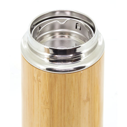 Realizado em bambú com dupla compartimento para melhor conservaçao, asa para transporte dobrável e infusar.Capacidade 400 ml
