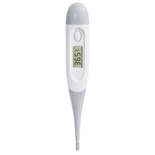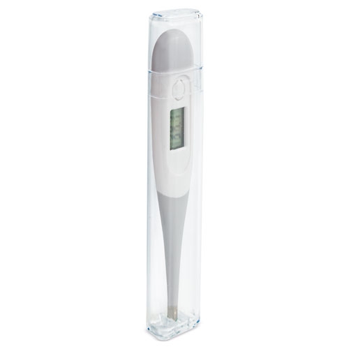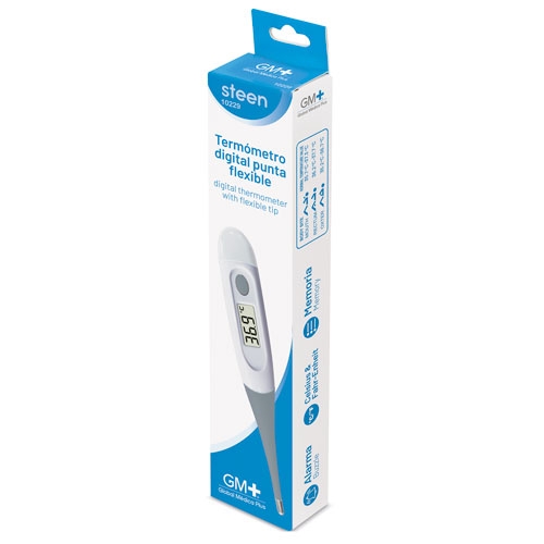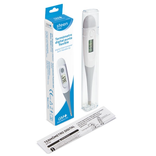 Ao terminar de fazer a medição de temperatura, o termómetro pita indicando-a.Mede tanto em grados celsius como fahrenheit.Tem um ecran LCD de 3 dígitos com memoria de recuperação da última medição efectuada.A ponta do termómetro é flexivel.Se pode usar em diferentes pontos de calor: ingle, axilas e boca. Inclui Pilha LR41Cada termómetro inclui estojo transparente e vai apresentado numa caixa individual (medida caixa cartão 3×13,8×2,7 cm, medida caixa transparente 25x13x1,4cm)Cada termómetro inclui manual de uso em idiomas: Castelhano, Inglés, Alemão, Frances, Portugues e Italiano.
