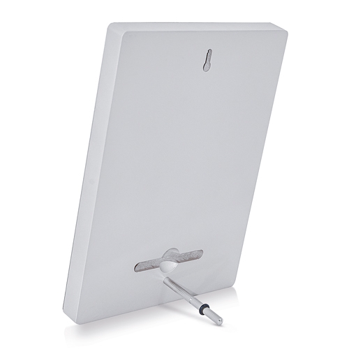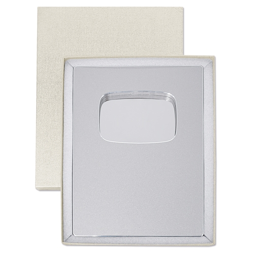Design elegante com acabamento metálico.